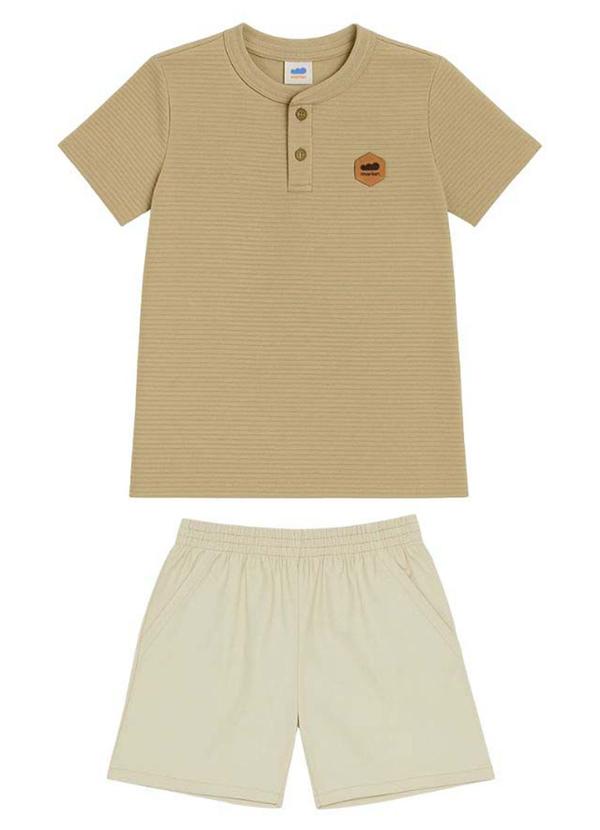 Marlan - Conjunto Camiseta e Bermuda em Sarja Bege