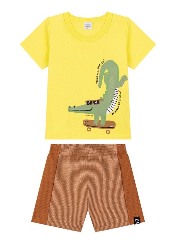 Marlan - Conjunto Camiseta e Bermuda Moletinho Amarelo