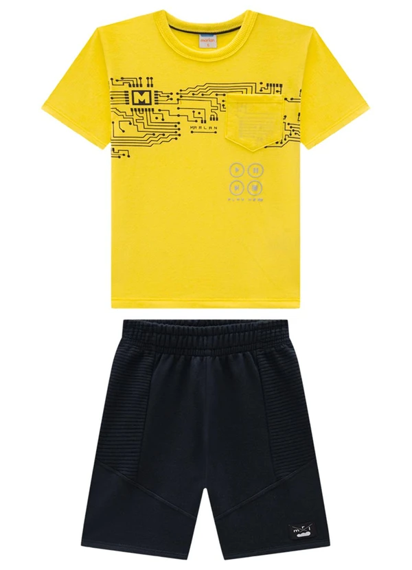 Marlan - Conjunto Camiseta e Bermuda Moletinho Amarelo