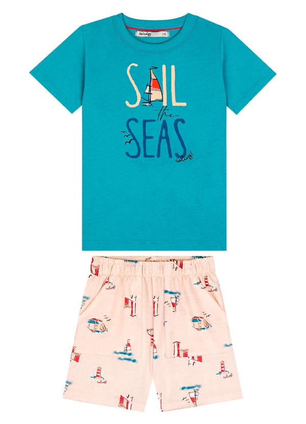 Ioluig - Conjunto Camiseta e Bermuda Moletinho Terre Azul