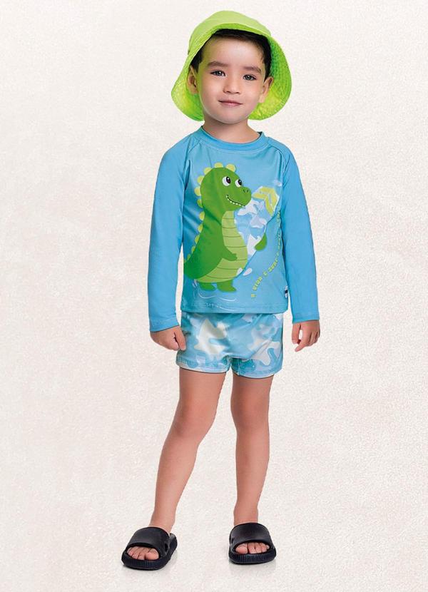 Fakini Kids - Conjunto Camiseta M/Longa/Sunga Boxer Azul