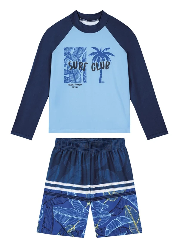 Marlan - Conjunto Camiseta Manga Longa Uv e Bermuda Azul