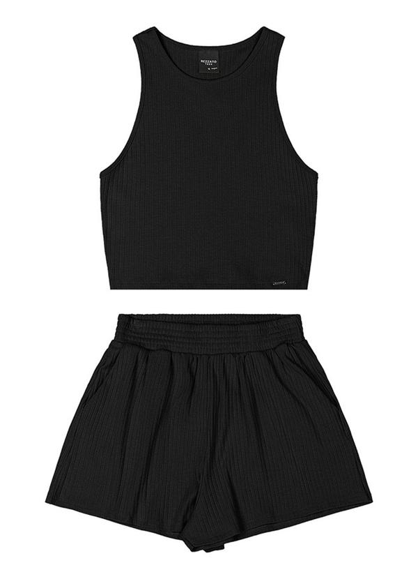 Rezzato - Conjunto Canelado Cropped e Shorts Teen Preto