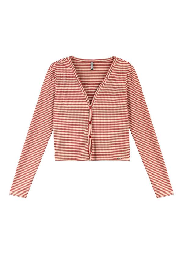 Marialícia - Conjunto Cardigan com Regata Listrado Vermelho