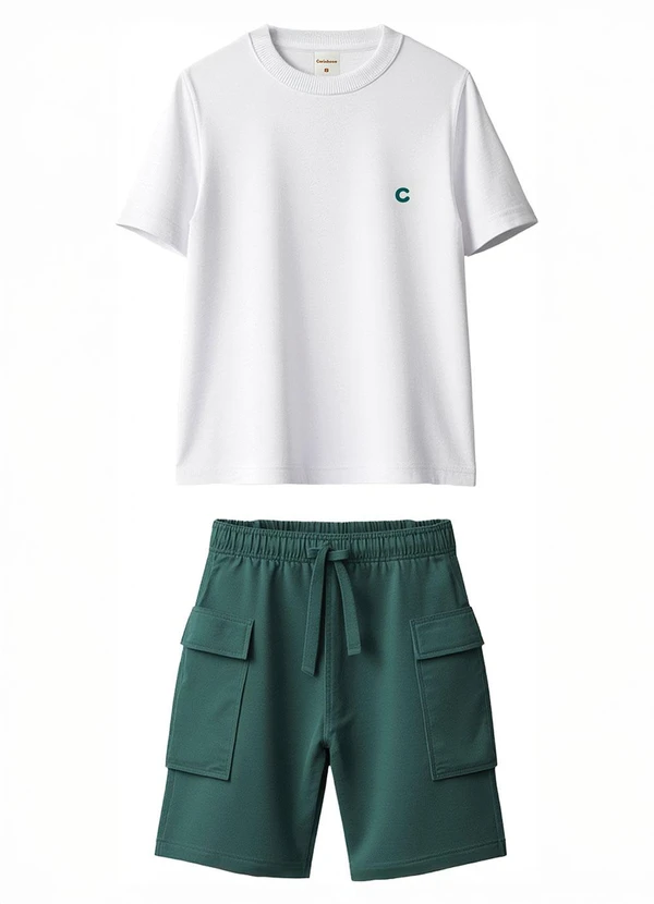 Carinhoso - Conjunto Cargo com Bordado em Cotton Branco