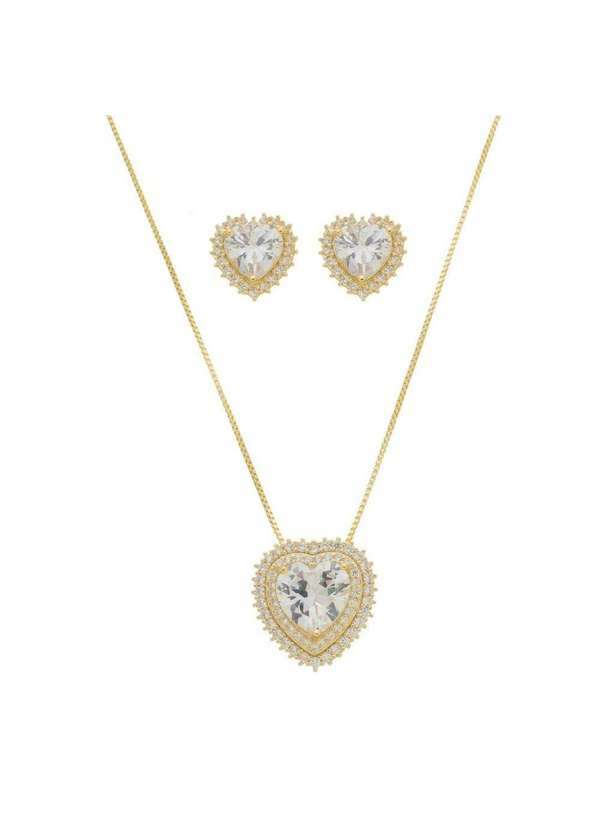 Piuka - Conjunto Colar e Brinco Coracao Zirconia Folheada a Ouro 18k Dourado
