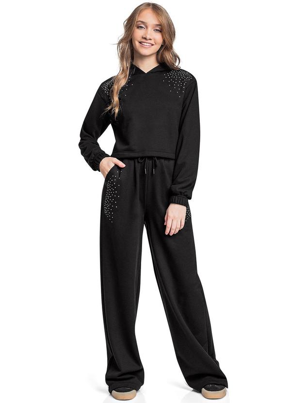 Gloss - Conjunto com Blusão e Calça Wide Leg Preto