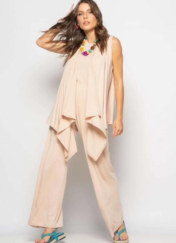 Salvatore Fashion - Conjunto com Kimono, Regata e Wide Leg Malha Bege