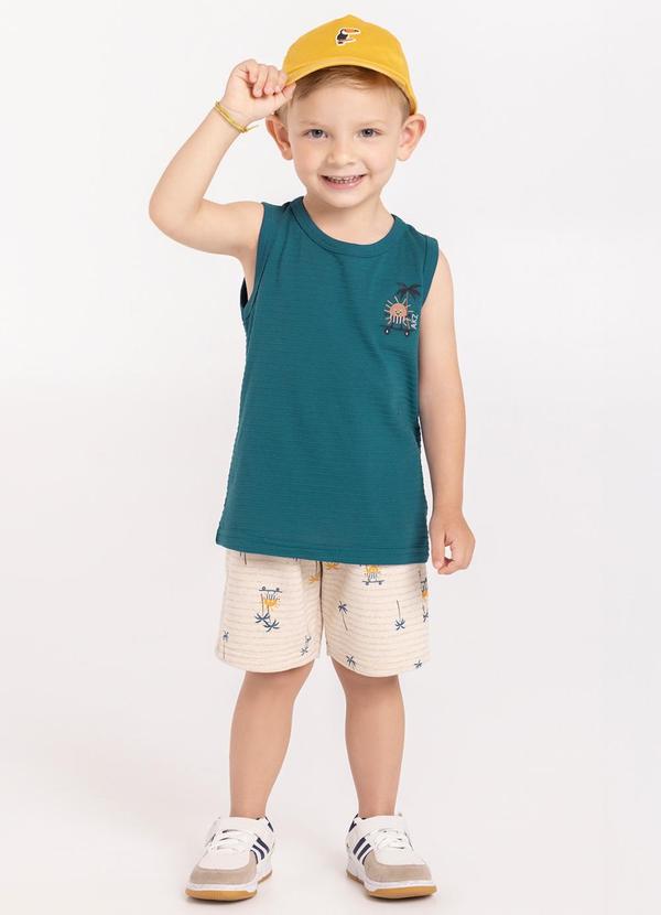 Alakazoo - Conjunto com Regata Bordada e Bermuda Bege