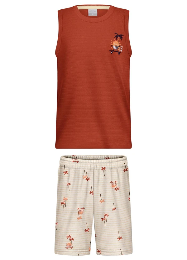 Alakazoo - Conjunto com Regata Bordada e Bermuda Laranja