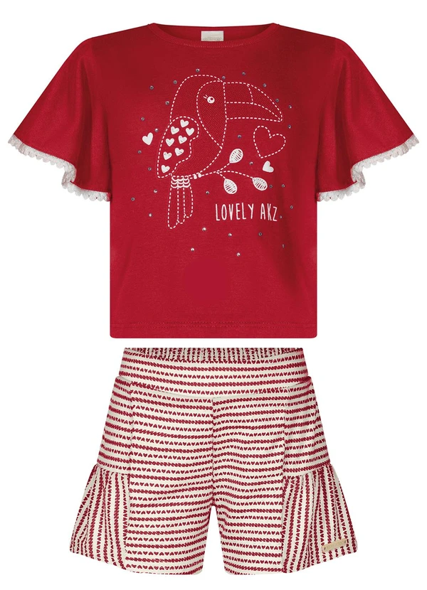 Alakazoo - Conjunto com Shorts e Blusa com Pompons Vermelho