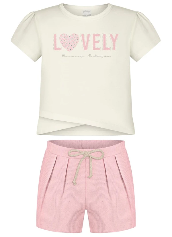 Alakazoo - Conjunto com Shorts e Blusa Transpassada Rosa