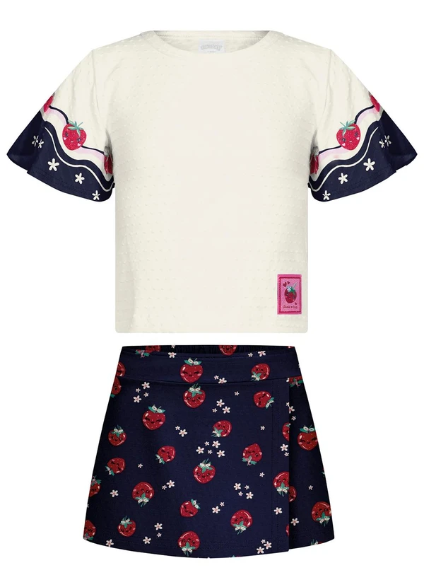 Alakazoo - Conjunto com Shorts Saia Estampado e Blusa Azul