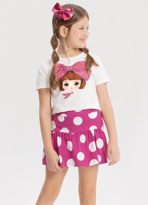 Alakazoo - Conjunto com Shorts Saia Estampado e Blusa Rosa