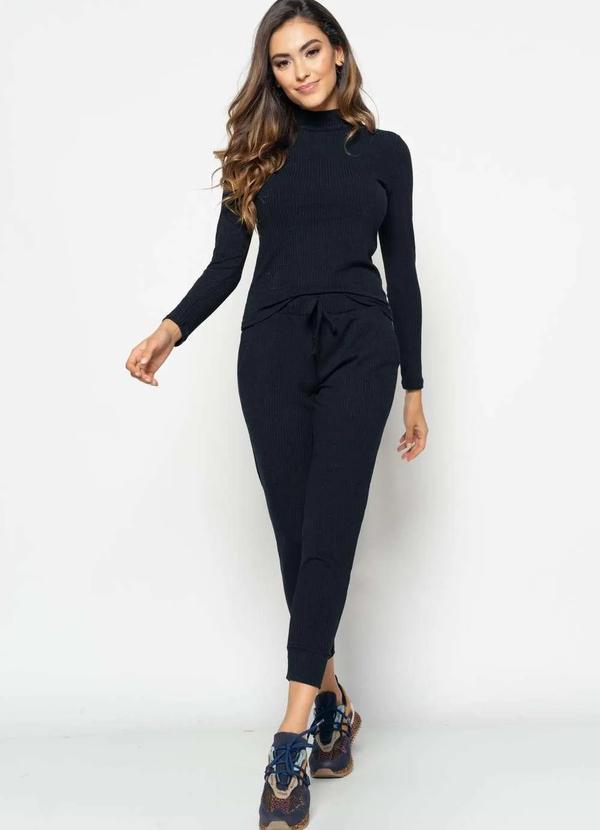 Salvatore Fashion - Conjunto Comfy Bl. Gola Alta M/Longa e Jogger Canelado Preto