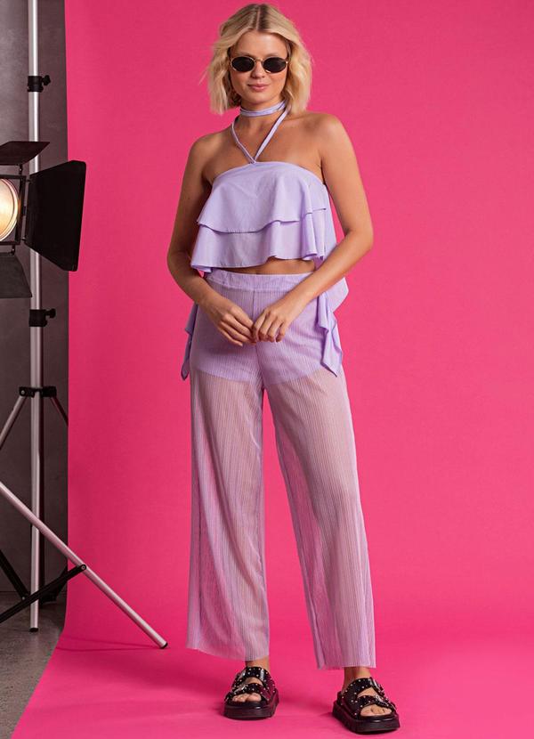 Choyee - Conjunto Cropped com Babados e Calça Roxo