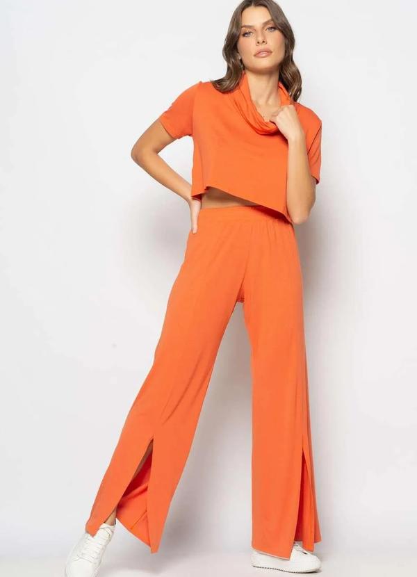 Salvatore Fashion - Conjunto Cropped Golão e Calça Fenda Frontal Malha Laranja