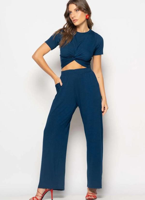 Salvatore Fashion - Conjunto Cropped Nó e Wide Leg Malha Azul
