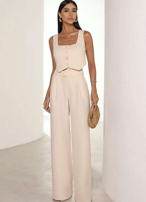 Conjunto Dot Clothing Emily Alfaiataria Conjunto cropped com decote quadrado, fechamento em botões na parte frontal, alças largas, barra de colete e não possui bojo. Calça com cintura alta, cós duplo, fechamento em zíper e botões, possui passagens para cinto, bolsos laterais funcionais, bolsos traseiros decorativos. Tecido: Alfaiataria Premium Composição: 95% Poliéster 5% Elastano TABELA DE MEDIDAS CROPPED: TAMANHO BUSTO CINTURA COMPRIMENTO PP 88 cm 78 cm 43 cm P 91 cm 81 cm 46 cm M 94 cm 84 cm 49 cm G 97 cm 87 cm 52 cm CALÇA: TAMANHO CINTURA QUADRIL COMPRIMENTO PP 64 cm 106 cm 115 cm P 67 cm 109 cm 118 cm M 70 cm 112 cm 121 cm G 73 cm 115 cm 124 cm *Modelo usa PP/36 Produzido no Brasil