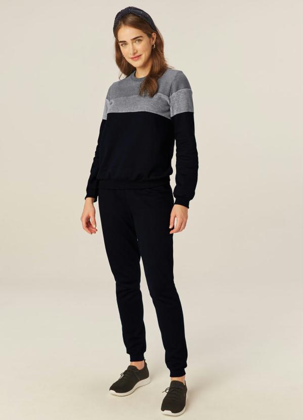 A Peça é 2 em 1, podendo ser usada como um conjunto comfy para passear ou um Pijama mais estruturado e quentinho. Confeccionado em moletom flanelado e plush navalhado. Super moderno e confortável, ele vai te conquistar. Invista! Blusa: Decote: Redondo Manga: Longa com punho aplicado Detalhe de strass aplicado Parte frontal com recortes em cor contraste Calça: Modelagem: Jogging Possui cintura mediana Cós: Aplicado com elástico embutido