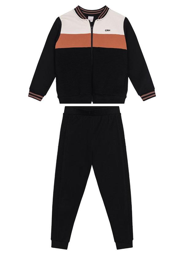 Carinhoso - Conjunto em Malha Listrada Menino Preto