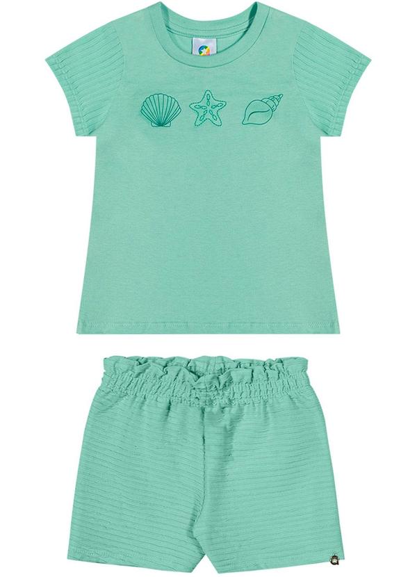 Alenice - Conjunto em Malha Plissada com Bordado Verde