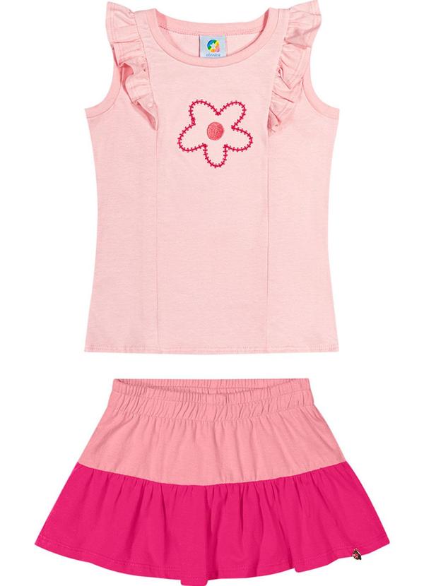 Alenice - Conjunto em Meia Malha com Bordado Menina Rosa