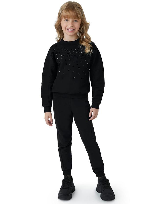 Carinhoso - Conjunto em Moletom com Strass Preto
