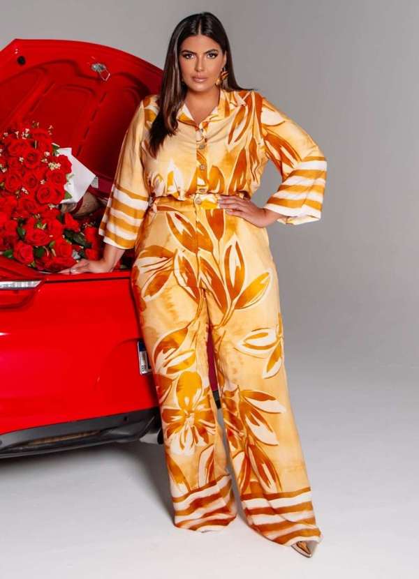 Predilects Plus - Conjunto Feminino de Calca e Camisa Plus Size Amarelo
