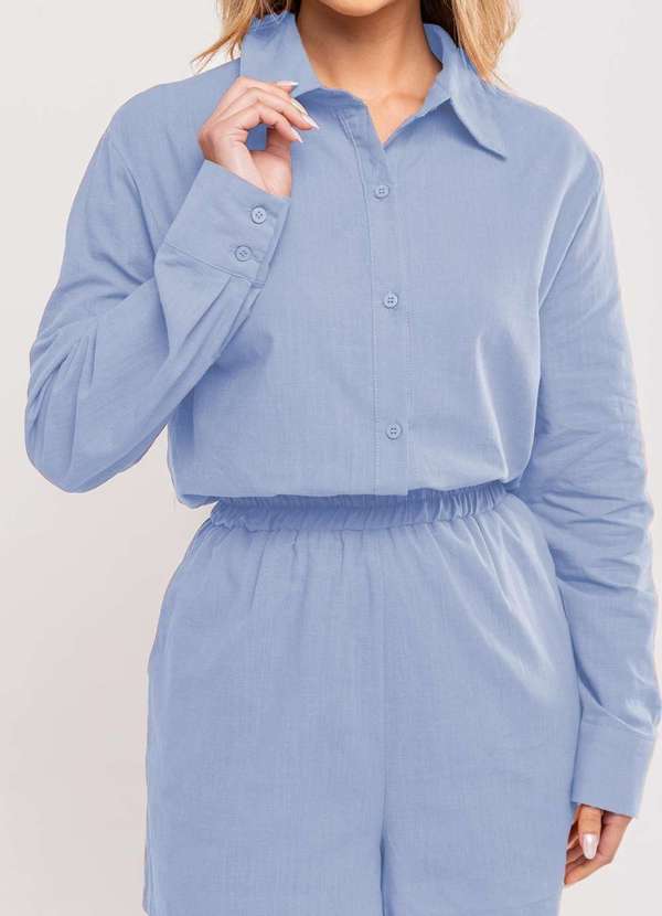 Salvatore Fashion - Conjunto Feminino de Camisa e Short em Algodão Azul