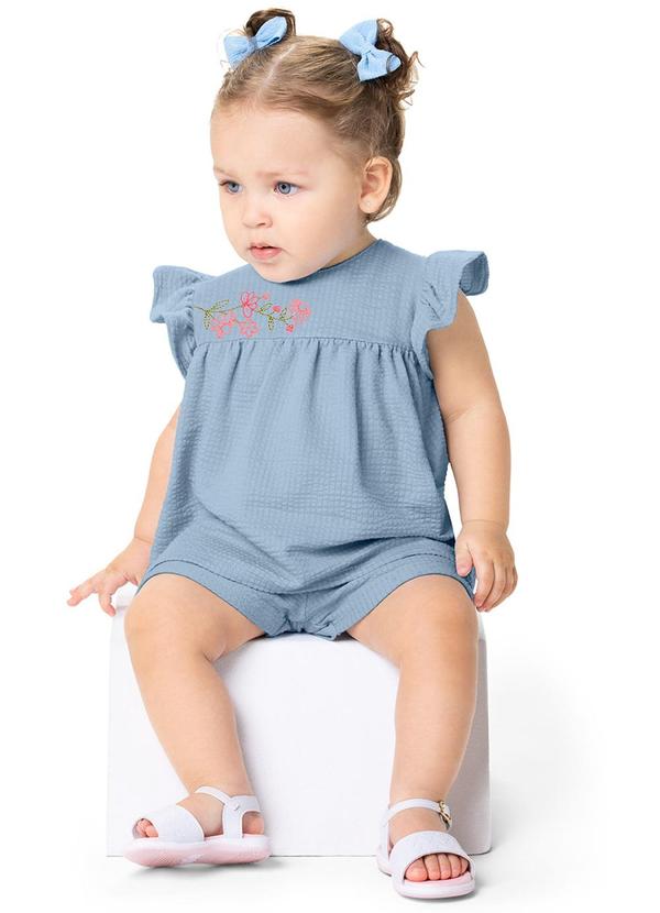Alenice - Conjunto Floral com Babados Menina Azul