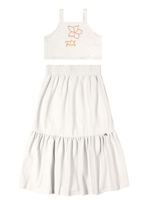 Alenice - Conjunto Floral com Saia Longa Menina Branco