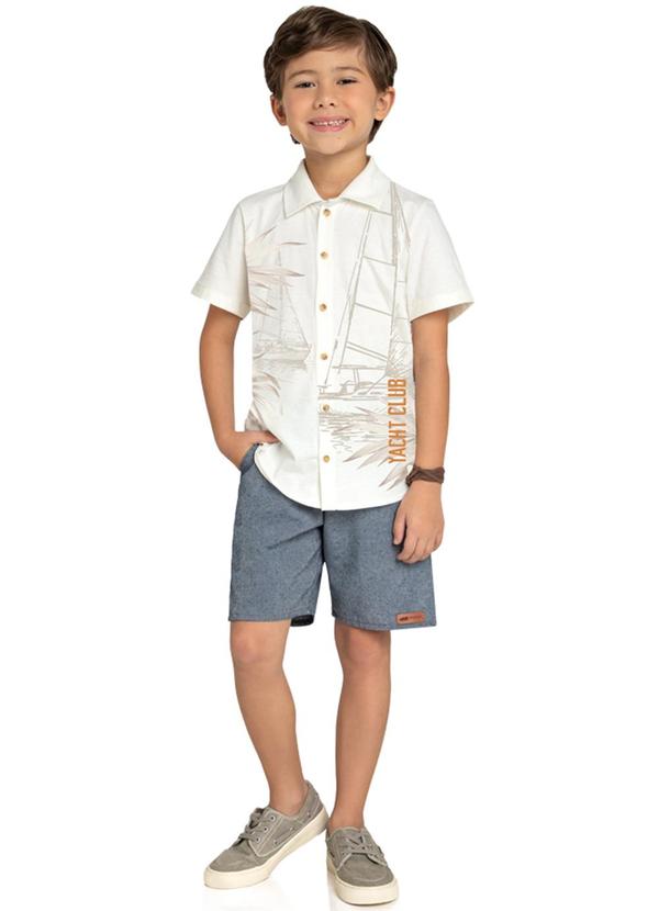 Marlan - Conjunto Infantil Camisa e Bermuda Veleiro Bege