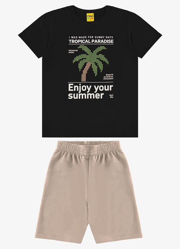 Rovi Kids - Conjunto Infantil Camiseta com Bermuda Preto