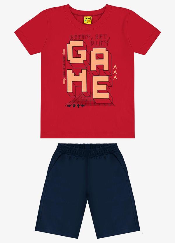 Rovi Kids - Conjunto Infantil Camiseta com Bermuda Vermelho
