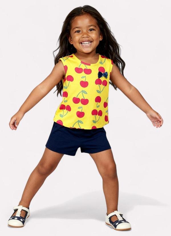 Kyly - Conjunto Infantil Menina Cereja Amarelo