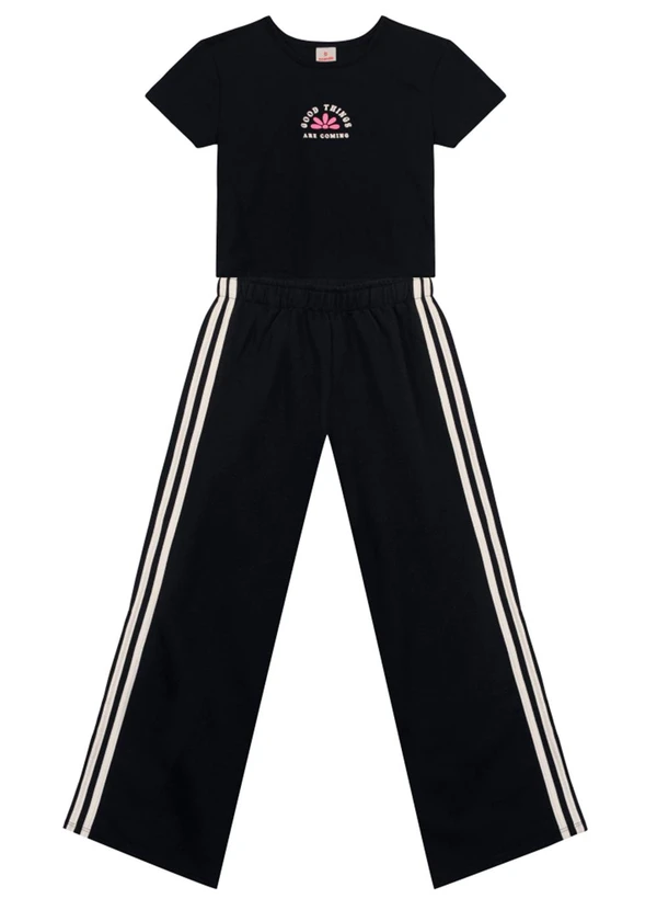 Brandili - Conjunto Infantil Menina de Flor Preto