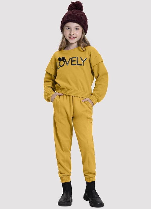 Alakazoo - Conjunto Infantil Menina em Moletom com Bordado Amarelo