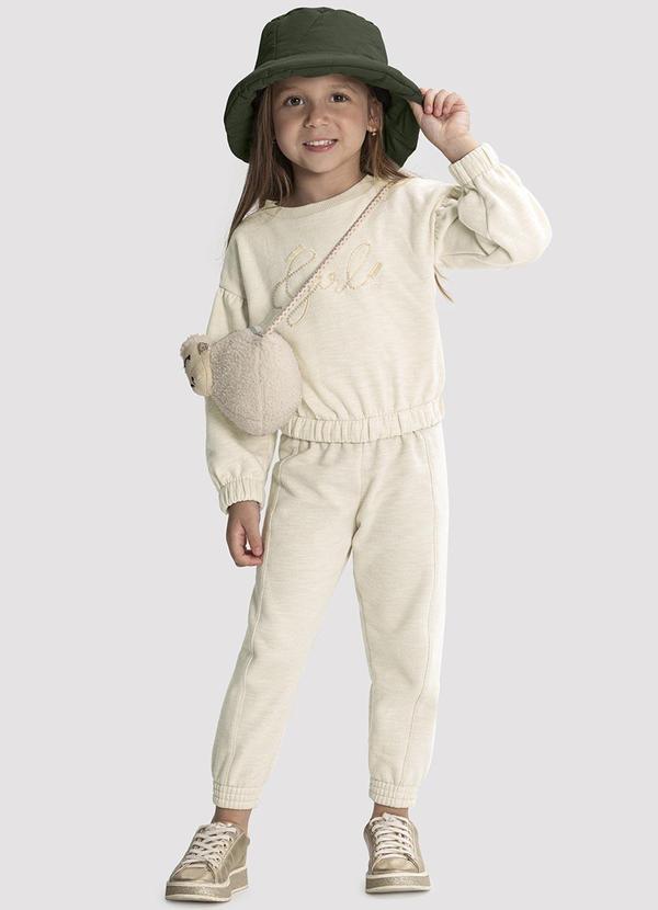 Alakazoo - Conjunto Infantil Menina em Moletom com Lantejoula Bege