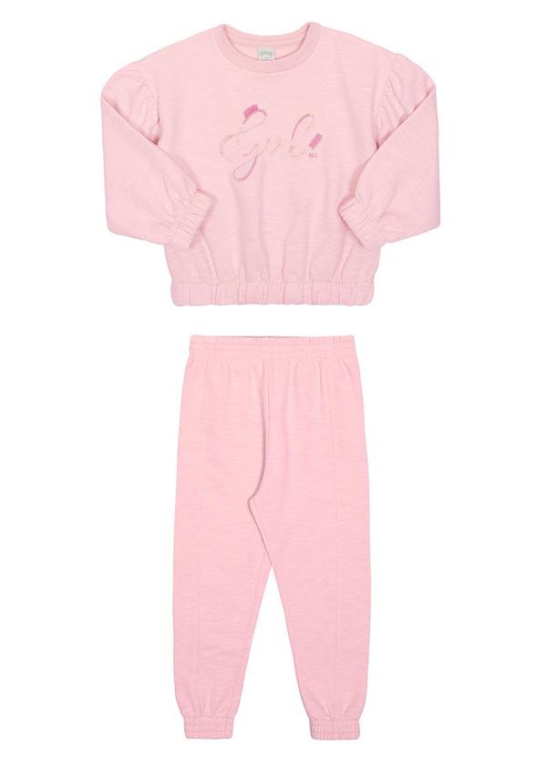 Alakazoo - Conjunto Infantil Menina em Moletom com Lantejoula Rosa