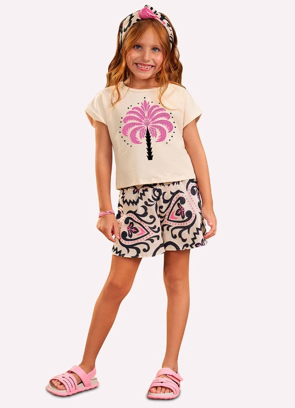 Nanai - Conjunto Infantil Menina Estampa Bege