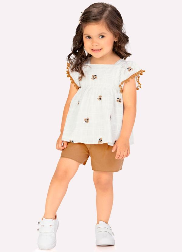 Milon - Conjunto Infantil Menina Flores Off White