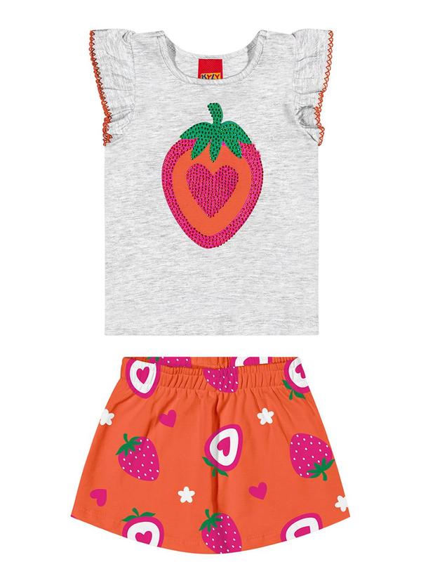 Kyly - Conjunto Infantil Menina Morango Cinza