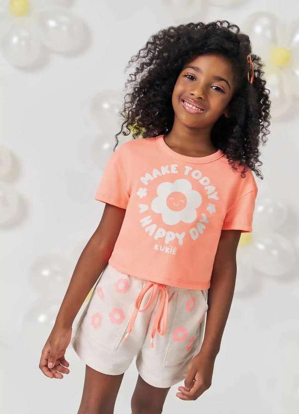 Kukiê - Conjunto Infantil Menina Rosa Kukiê Estampado