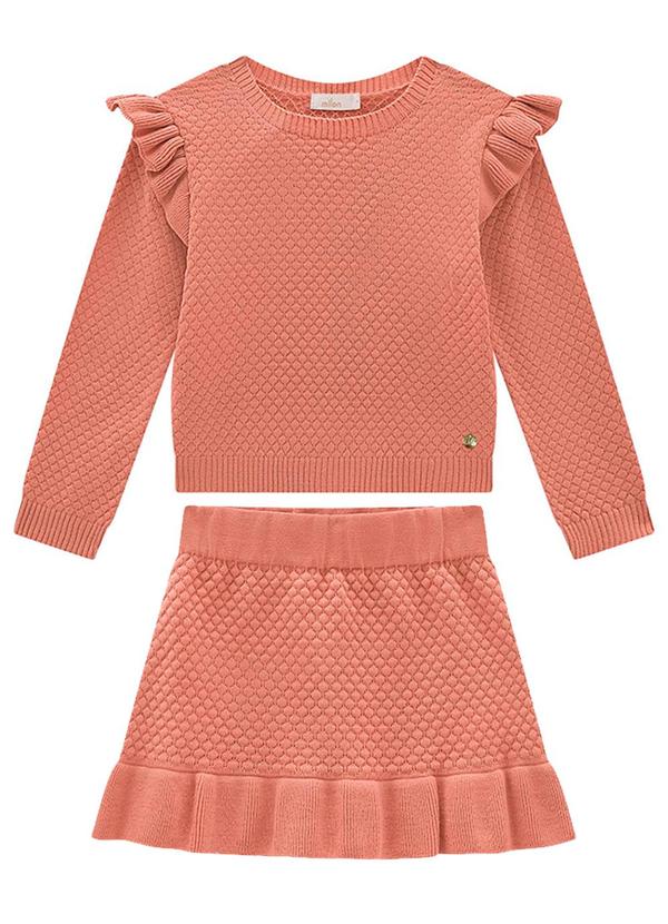 Milon - Conjunto Infantil Menina Tricot Rosa