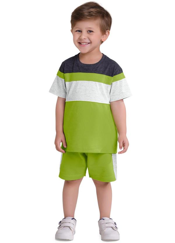 Composição: CAMISETA PARTE SUP 50%ALGODAO 50%POLIESTER, RECORTE 98%ALGODAO 2%POLIESTER, PARTE INFERIOR 100% ALGODAO, BERMUDA 100%ALGODAO