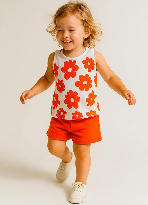 Rosa Azul - Conjunto Infantil Regata Flores Iaia Laranja