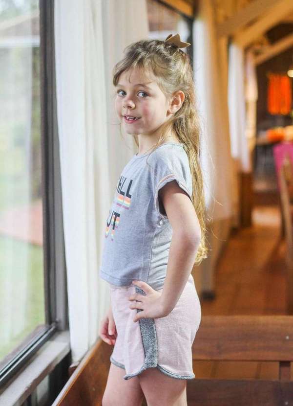 Cia da Malha - Conjunto Infantil Shorts Meninas Mescla Claro