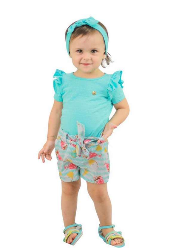 Cia da Malha - Conjunto Infantil Shorts Meninas Verde Agua