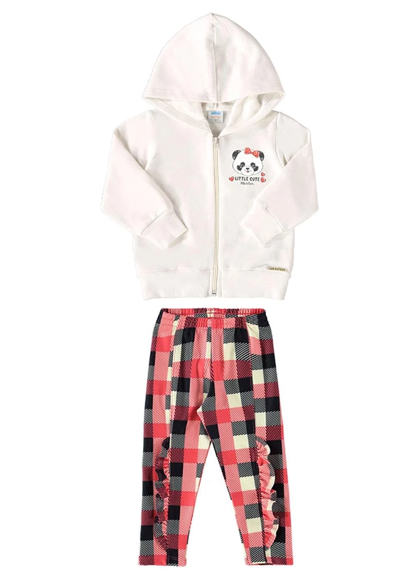 Marlan - Conjunto Jaqueta e Calça Moletom Xadrez Bege